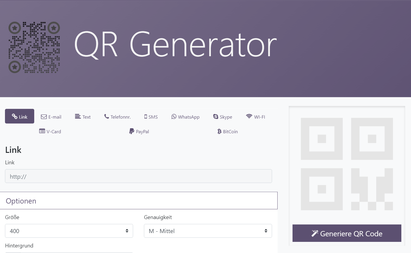 Generiere in Sekunden einen eigenen QR Code, den du einfach ausdrucken und verlinken kannst. Auch Designanpassungen können vorgenommen werden.
